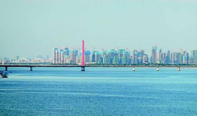 今天的汉江在首尔市内的60多公里江面上,已有近30处过江通道,平均2公里左右就有一处过江通道。