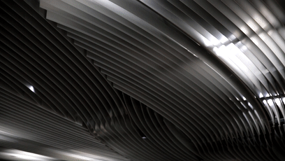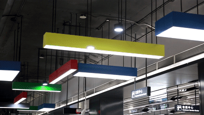 摒弃了大多数地铁站中轴对称的常规形态,博览中心站东西南北四面墙体以不同的材料和构成形态,使空间自然形成方向感。