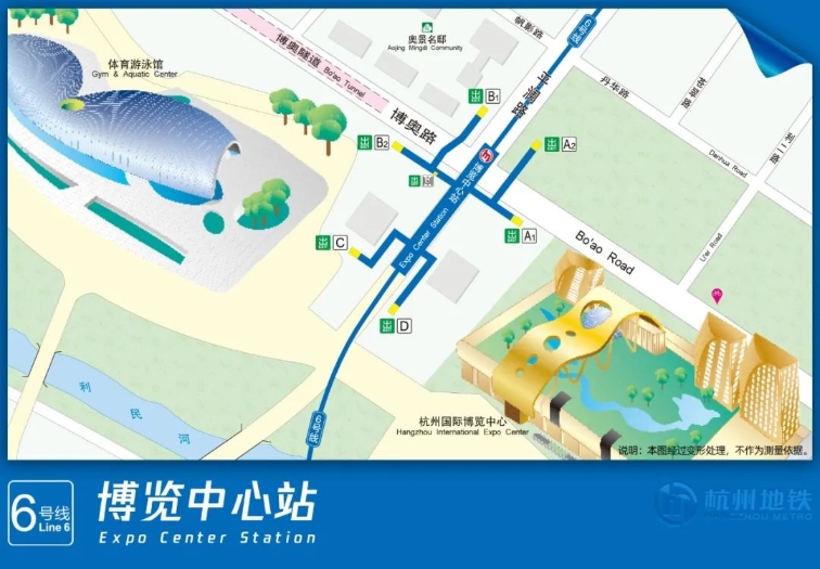 博览中心站位于平澜路与博奥路交叉口,博览中心的东北侧。