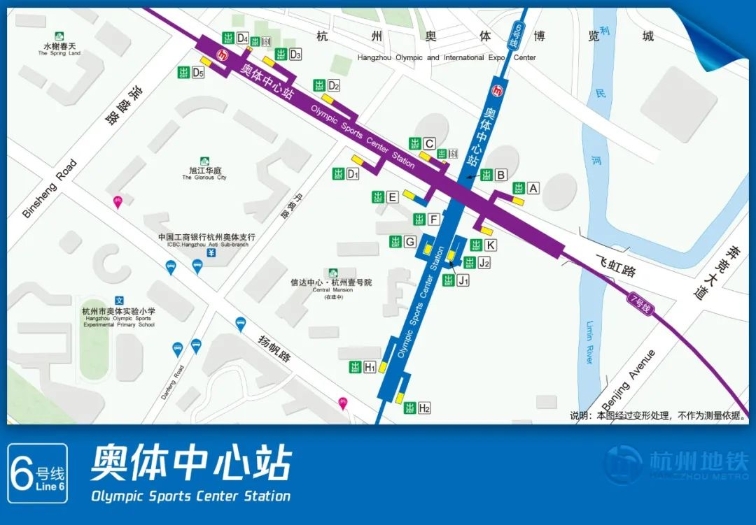 奥体中心站位于萧山区飞虹路与七甲闸弄交叉口,奥体中心东南侧,是6号线与7号线的换乘站。