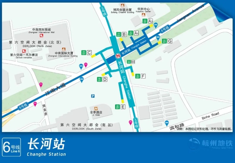 长河站位于长河路和江南大道交叉口,是6号线与5号线的换乘站。