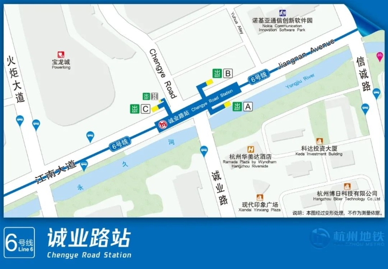 诚业路站位于诚业路与江南大道交叉口,沿江南大道东西向布置,C出入口与宝龙城下沉广场相连。