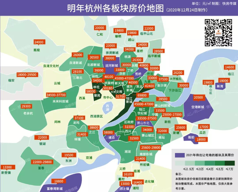 除了这两宗地块,即将跨入新纪年,杭州土拍也正重返忙碌。据快房网不完全统计,截至目前,杭州市区已挂牌将在2021年进行出让的土地数量共有24宗,遍布杭州八区。