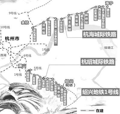 预计明年年中,杭海线与杭绍线也将建成通车。届时,从杭州西湖边出发,买上一张地铁票,就可以直接坐地铁到绍兴的仓桥直街吃臭豆腐,或是到海宁皮革城买皮草。