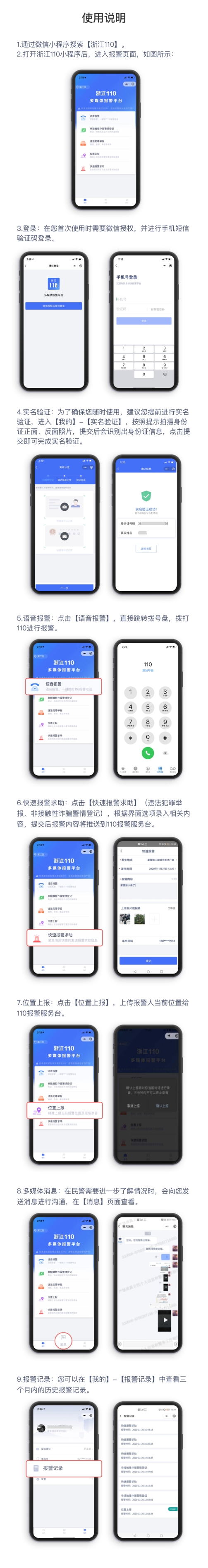 开通110互联网报警平台后,在浙江省内的群众可以通过该平台向当地110报警服务台发送图片、文字、短视频进行报警,与原有的拨打电话、短信报警相比,其最大优势是能传送视图资料,操作隐蔽,有利于保护特殊场景下的报警人,拓展了110报警服务覆盖面。能更有效应对以下三种情形的报警需求:一是听力以及语言障碍人士遇到紧急危难时;二是在遭遇不法侵害又不方便电话报警时;三是遇到危难不清楚自身所处位置时。