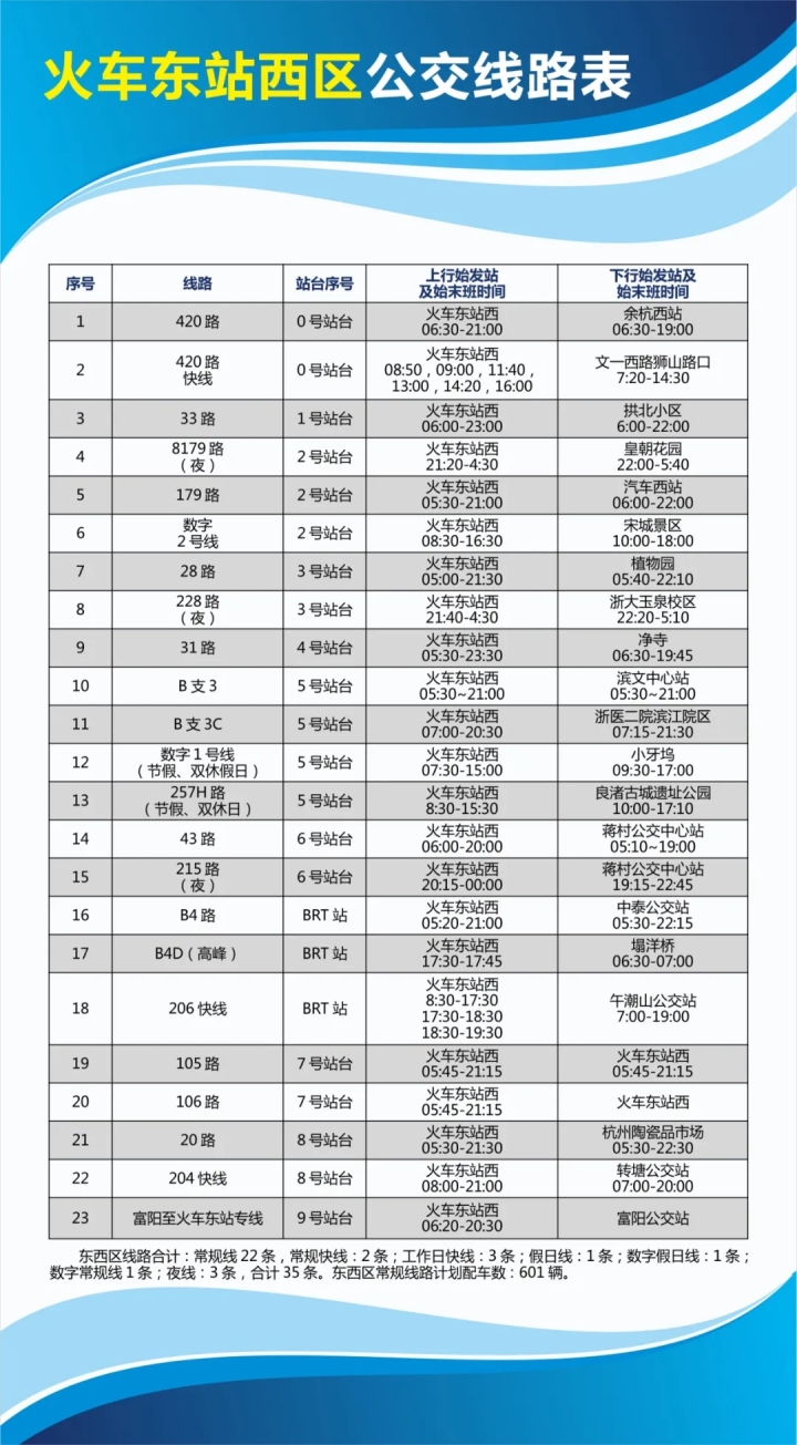 杭州东站共有两个公交换乘中心,分别位于东广场G层、西广场G层。