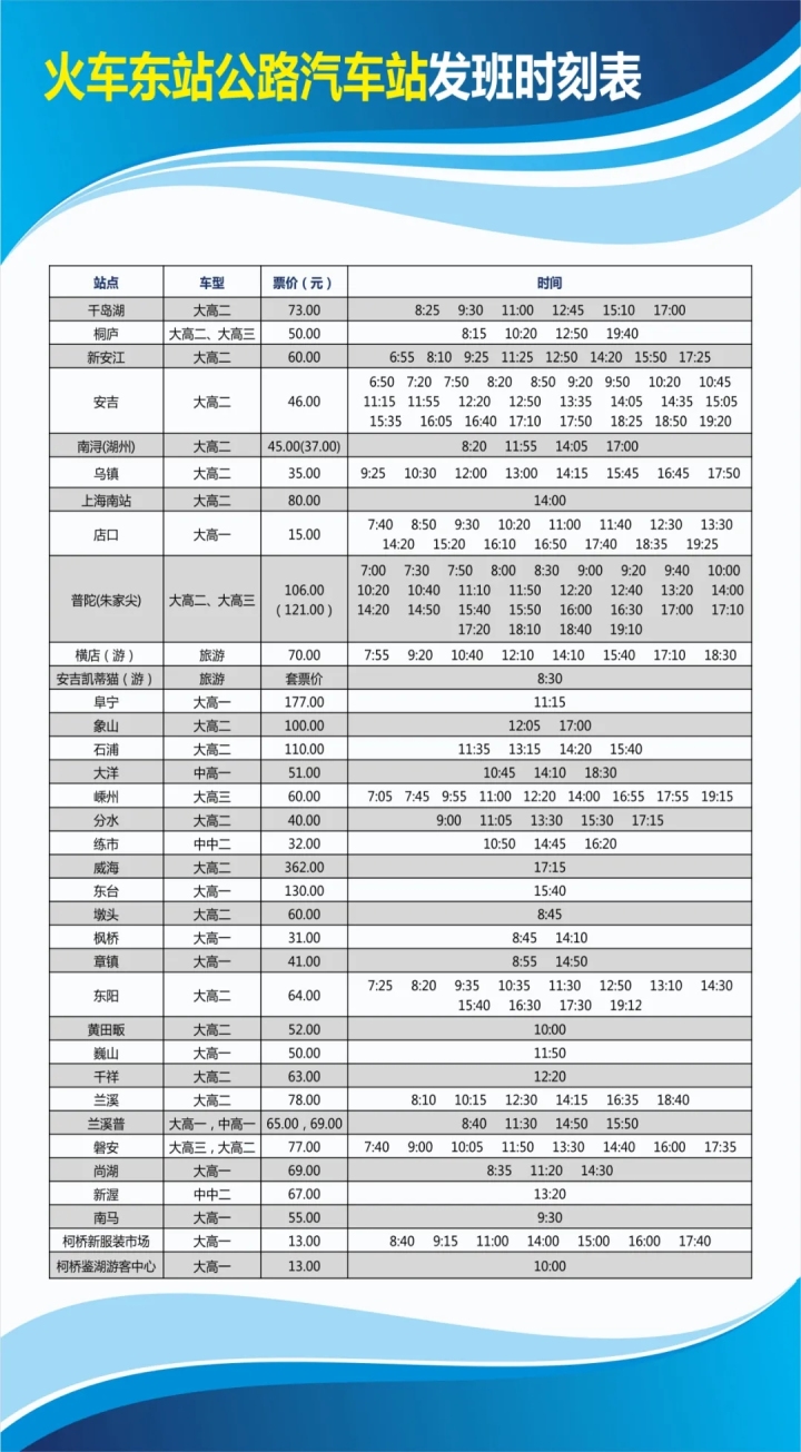 从这里可以乘坐安吉、普陀、乌镇、东阳、兰溪、柯桥、象山、横店、磐安等40余条班线。