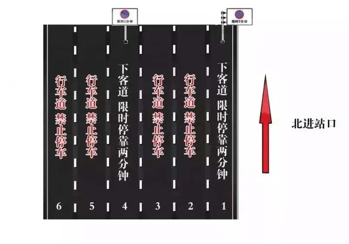 二层平台送客车辆,请走1、4车道,停靠时间2分钟内;其余车道为行车道,请小心行驶,随意停车可能会影响其他旅客的出行,送完客就可以直接左转下匝道离开。
