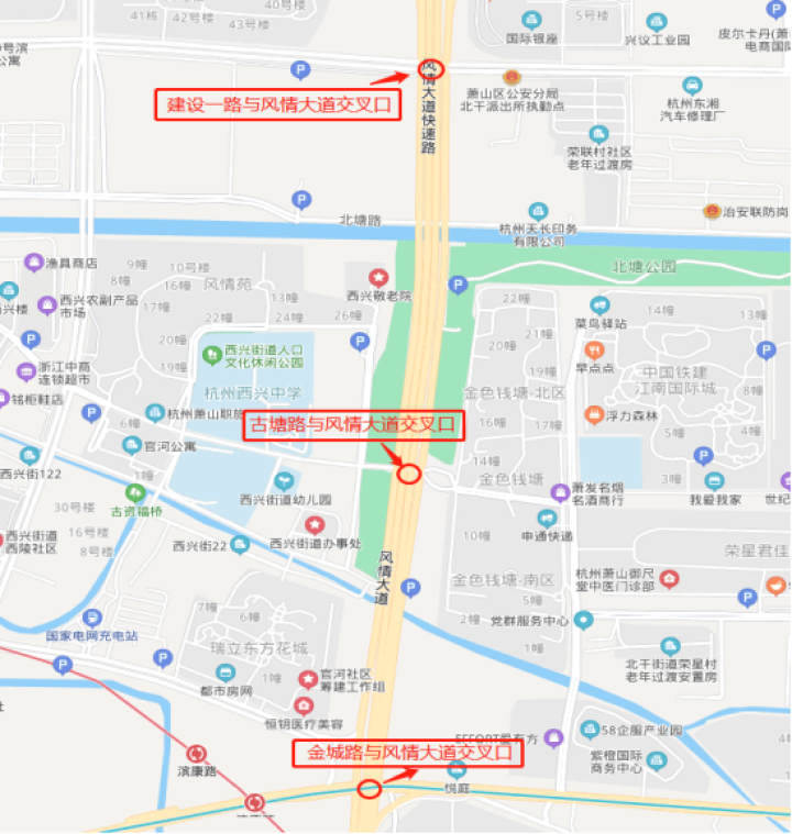 关于风情大道与金城路、古塘路、建设一路交叉口施工期间调整交通组织措施的通告
