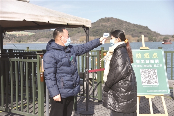 昨日起,湘湖景区对各景点、停车场、游船等进行全面测温和亮码检查,并建议游客出入景区佩戴口罩,进一步强化疫情防控工作。