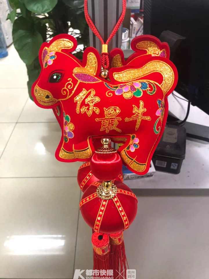 但这并不妨碍这款挂件已经成为了市场里的爆款,同事说,12元一串,最重要的是写着“你最牛”的好意头,不是说越来越没有年味吗?把这个往客厅里一挂,过年的气氛马上就起来了。