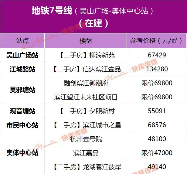 备注:地铁各线路最终开通运营时间以杭州地铁官方发布为准。图示各线路均为站点名称,如遇站点名称不同,可能是工程名与最终站点名称区别;周边二手房价格为楼盘成交价格,数据来自透明售房网最近30日成交数据,数据截止为2021年1月12日。