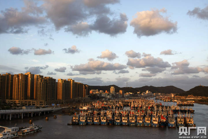资料图:浙江舟山沈家门港渔船沐浴在夕阳下(央广网记者 魏炜 摄)