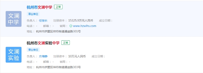 根据企查查的资料显示,文澜中学和新设文澜实验中学的法人各不相同,在拱墅区教育局网站上查询到,新设文澜实验中学的法人方海静是从教19载的拱宸中学教师,中学语文高级教师,历任班主任、团委书记、教科室主任、学生处主任、副校长,获得过杭州市教坛新秀、区学科带头人、区优秀教师、区十佳师德楷模等荣誉称号。