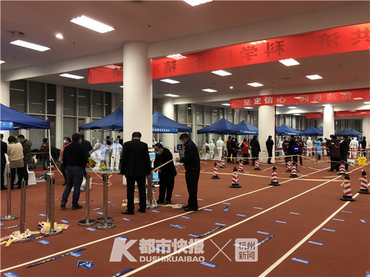 今晚,在杭州市奥林匹克体育中心组织各区、县(市)和相关部门开展大规模人群新冠肺炎病毒核酸检测筛查应急演练。快报记者正在现场——