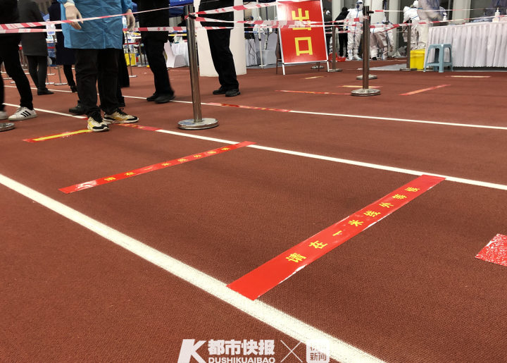 现场,各区县市采样队都把一米线标志做得非常明显。