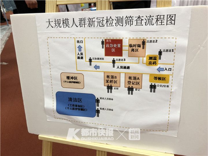 演练现场,萧山区大规模人群新冠检测筛查流程图
