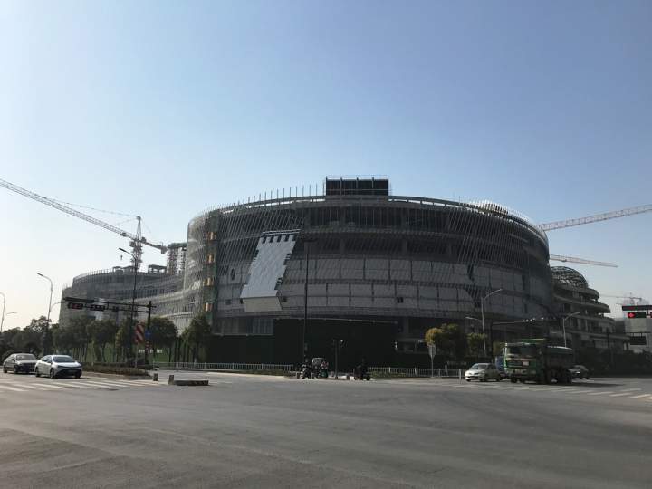 从现场探访情况来看,计划9月份开业的奥体印象城已经全面结顶,正在进行外立面的铺陈工作。