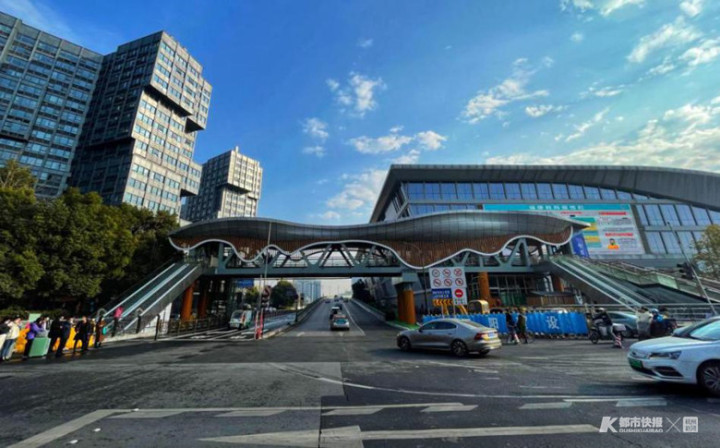 进出杭州东站的行人,可以直接从天桥上过;