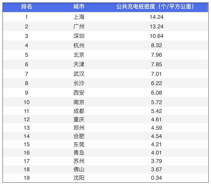 据最新发布的《2020年度中国城市交通报告》显示(由百度地图联合清华大学数据科学研究院交通大数据研究中心、同济大学交通科学与技术研究院、北京交通发展研究院智能交通所等编写),截至2020年底,全国一线及新一线城市公用充电桩密度排行中,上海、广州、深圳排名前三,其主城区公用充电桩密度分别达到每平方公里14.24个、13.24个,以及10.64个。而杭州(每平方公里8.32个)位列第四,超过了北京(每平方公里7.96个)。