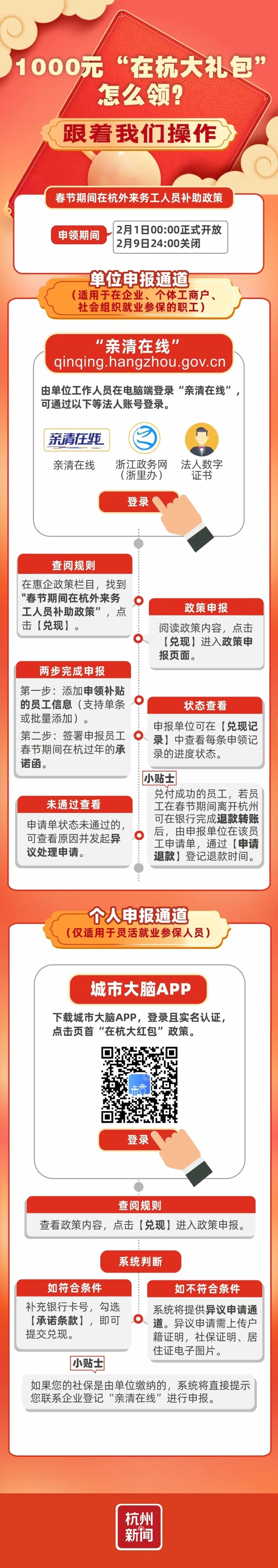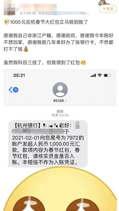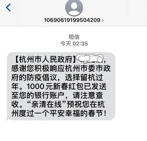 今天(2月1日)00:00,春节在杭过年的非浙户籍务工人员1000元现金补贴正式开放申领!截至目前,已经有不少网友说红包已经到账了!