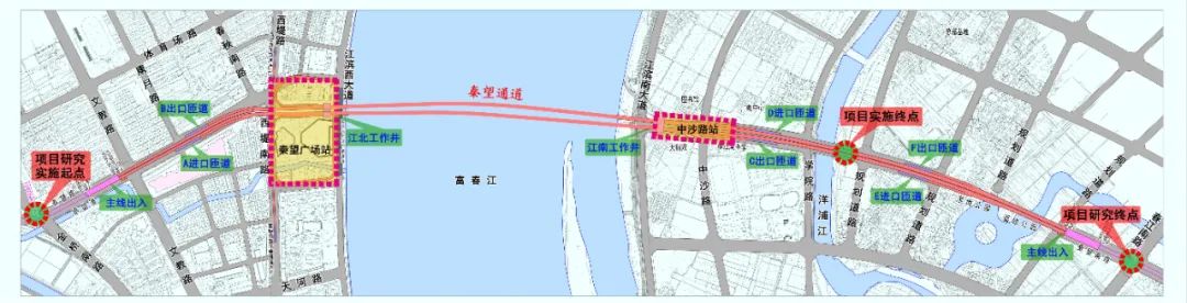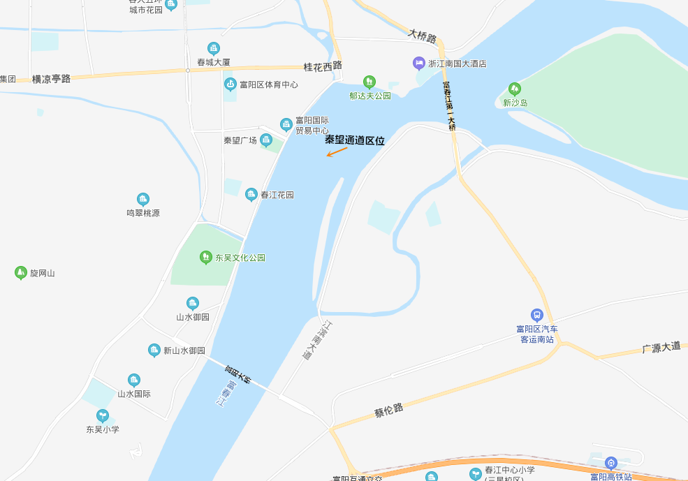 秦望通道项目位于富阳大桥下游3公里,富春江第一大桥上游2公里处。