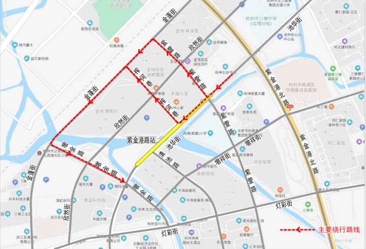 图2 紫金港路站施工绕行线路
