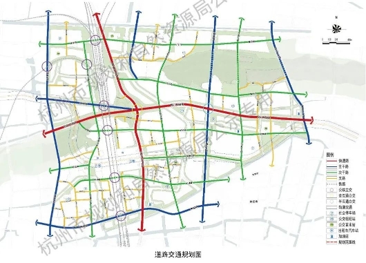城市快速路:南北向的通城快速路,红线宽度(含地面道路)52米,东西向的彩虹快速路,红线宽度(含地面道路)43-55米。
