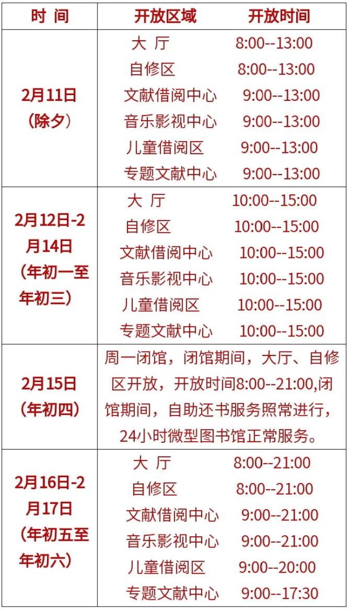 春节假期准备假期去图书馆的朋友,下面这张图要收好。