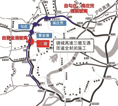 昨天,记者从杭州市交通运输行政执法队获悉,因G2504杭州绕城高速公路三墩互通改建工程施工需要,自2021年2月8日12时起至12月30日,G2504杭州绕城高速公路三墩互通将进行全封闭施工,期间将禁止一切社会车辆通行,原需走三墩收费站通行的车辆,可由紫金港、五常等收费站上下绕城高速。