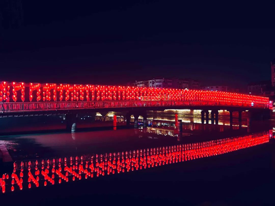 移步广济桥,与之遥望的便桥也焕然一新,变成了国潮网红灯笼桥。