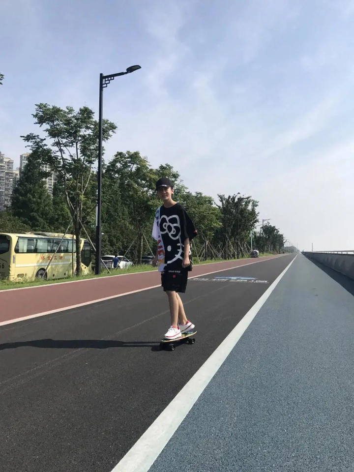 自行车、滑板这些运动,也是她的心头爱。滑板少女御风而行,很酷。