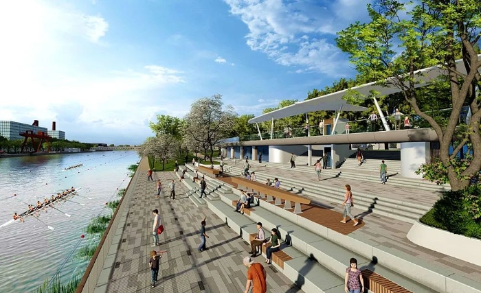 项目秉承绿色、开放、人本、艺术、共享的设计理念,沿线设置若干个文化活动主题的水岸活力公园,形成集观光、休闲、运动等多种需求为一体的生活化的公共文化空间,打造杭钢河·城市滨水开放绿地、国际赛艇大师赛举办地、国际青少年赛艇项目。
