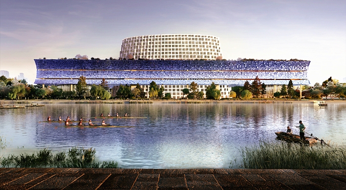 项目上部的空中花园和下部的城市广场创造了丰富多彩的公共活动空间,环形的博物馆和山形的文化交流中心相得益彰,将成为杭州市的公共文化客厅和文化地标。
