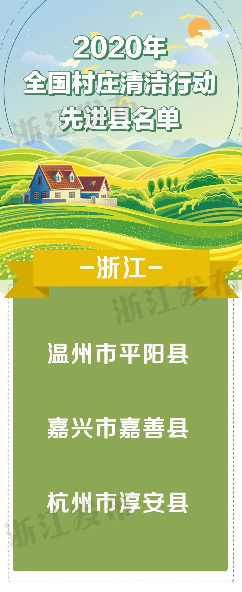 浙江发布消息 近日,中央农村工作领导小组、农业农村部通报表扬2020年全国村庄清洁行动先进县,浙江3地上榜。