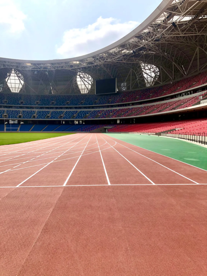杭州奥体中心主体育场,是一个拥有标准400米综合田径场设置,和国际标准尺寸足球场的大型体育场。一进入场馆内部,浓浓的运动风扑面而来。