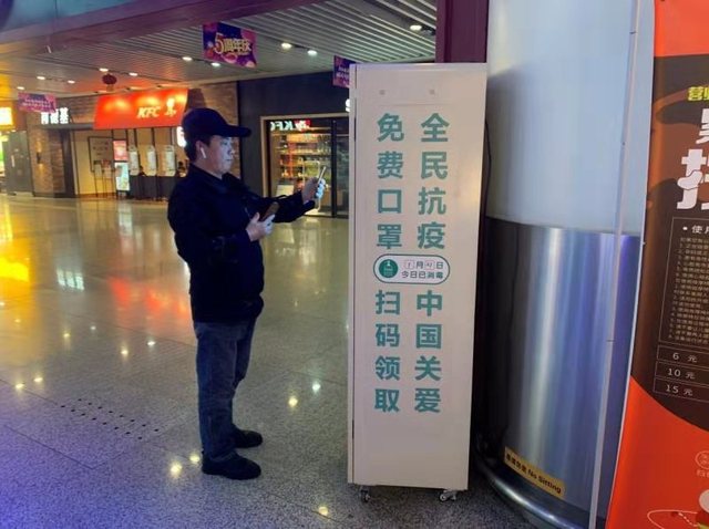从一旁的工作人员口中得知,整个春运期间,每天过来领取口罩的人数真不少,有的是旅客,有的是在附近商铺上班的一些员工,都在夸奖这台机子方便又好用。然后考虑到一些年龄大的人操作困难问题,所以东站在每个口罩机安置点都安排了工作人员值守,保证每个需要口罩的人都可以领取到。