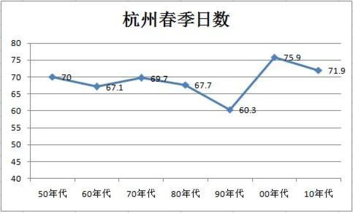 很多人感叹杭州的春天特别短暂,杭州气象台提供的统计数据表明,过去10年杭州春季平均日数是71.9天,和历史相比并没有少,还略微偏多了。但是春天的天气变化太快,降雨太多,像去年春季有70天,但是完全没有降雨、平均气温介于10-20℃之间的日数只有32天,所以不是春天短了,而是春光明媚的日子太少!