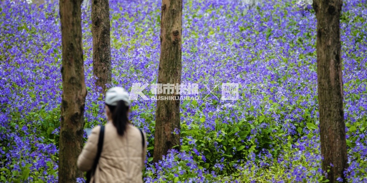 西湖双投桥边,一大片二月兰开得正艳。摄影记者 夏阳