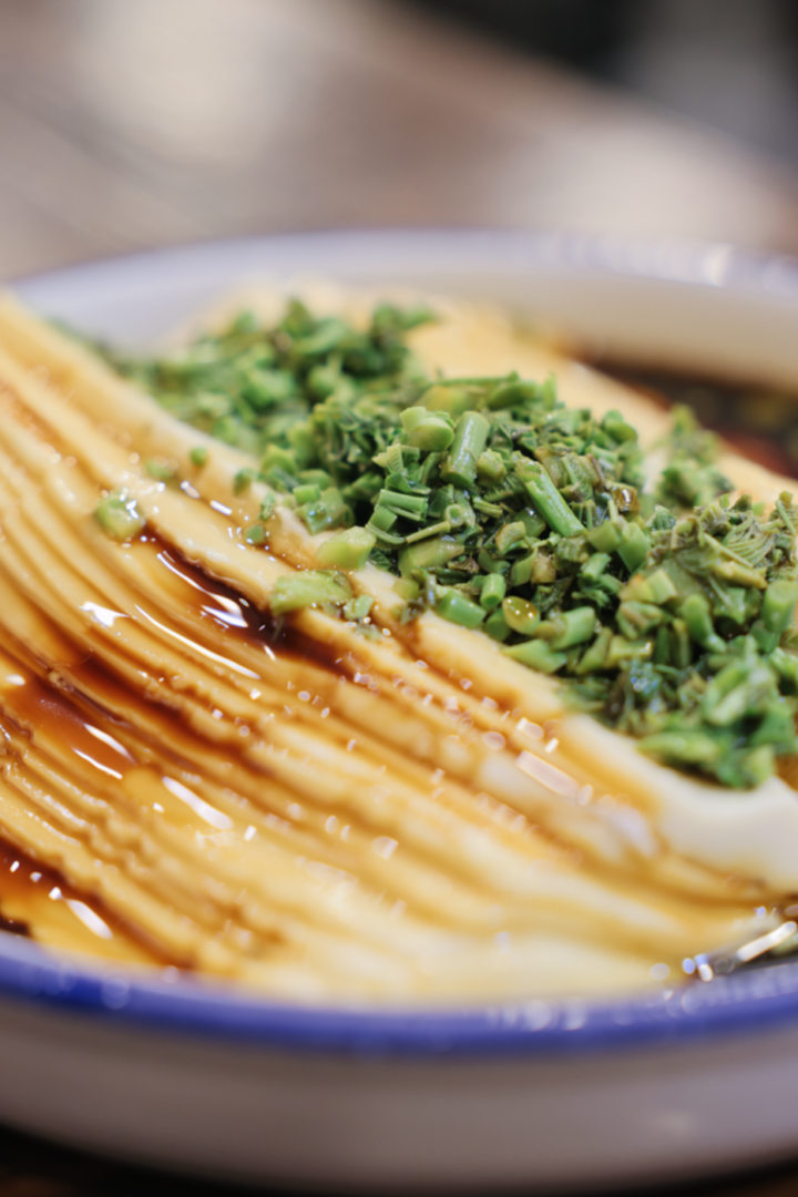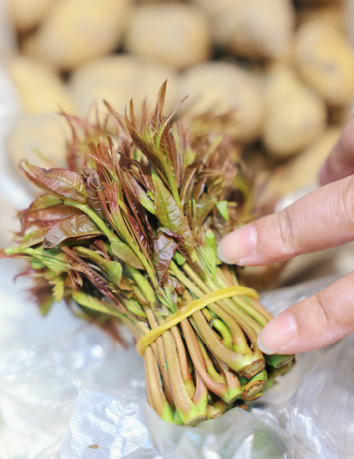 郭老板做了一番解说:“香椿的嫩头,就凉拌好了,什么都不用加也好吃的,稍微淋一点麻油,可以吃到香椿的青草气。