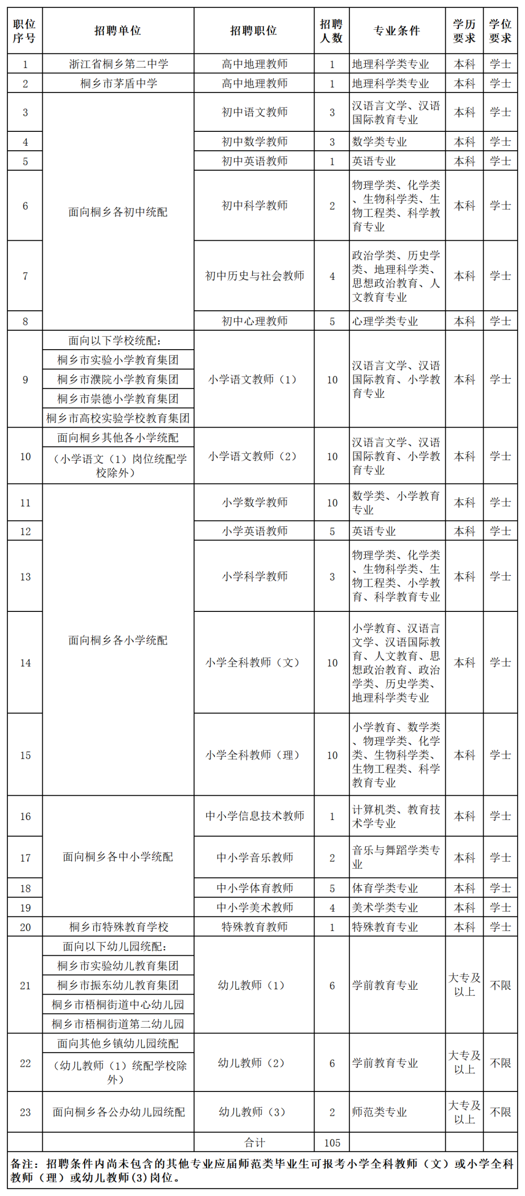 2021年,桐乡市教育系统面向师范类应届毕业生招聘105名事业编制教师。