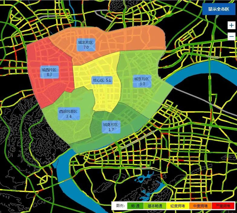 城西片区拥堵最为严重!