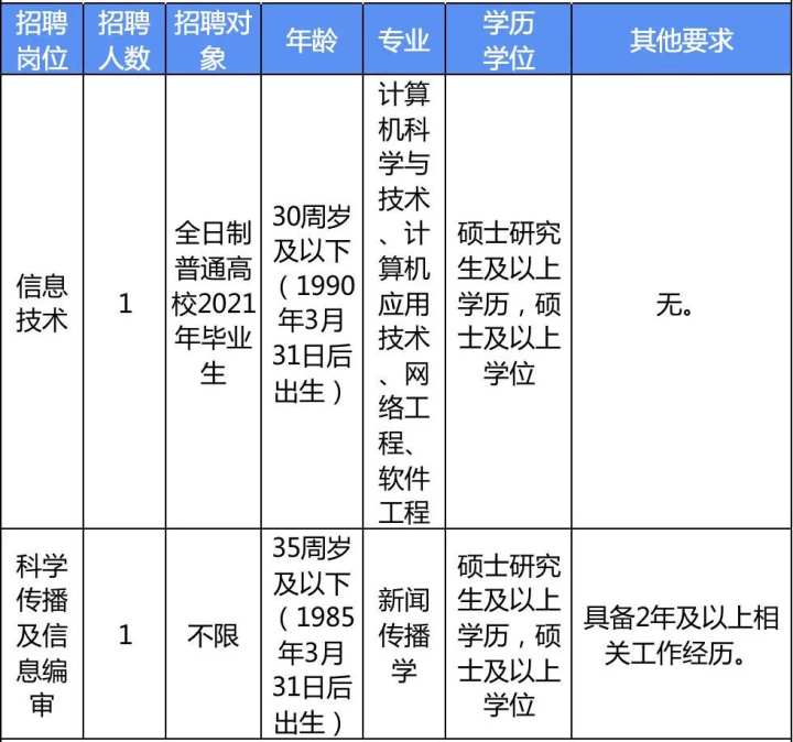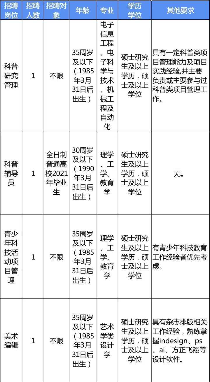 此次招聘的浙江省科协直属事业单位共5家,9个岗位9人,位于杭州市下城区。