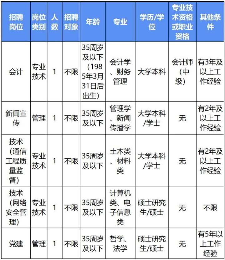 浙江省网络信息安全技术管控中心是浙江通信管理局下属公益一类事业单位,本次招聘5个岗位共5人。