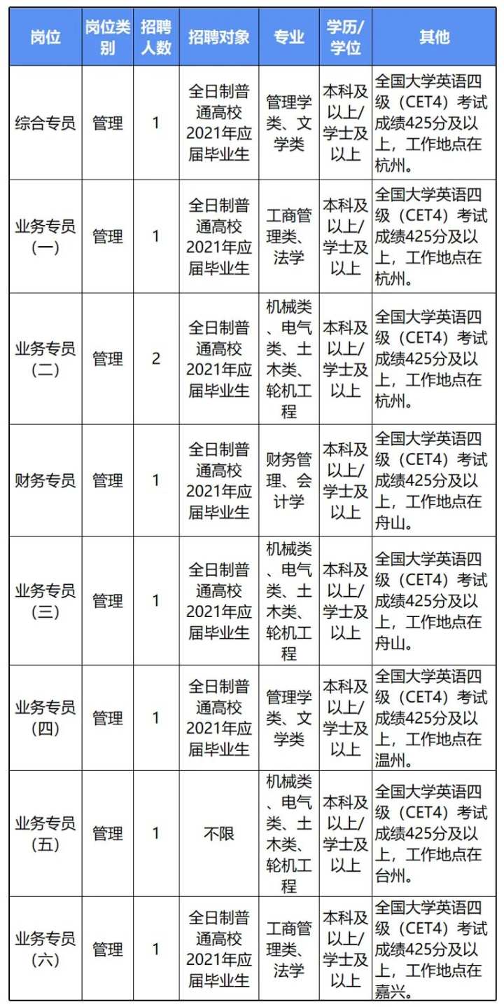 浙江海事局后勤管理中心为中央机构编制委员会办公室批准成立的财政补助事业单位,主要承担浙江海事局后勤管理职责。本次招聘需求为8个岗位共9人。其中,工作地点在杭州的4人,在舟山的2人,在温州的1人,在台州的1人,在嘉兴的1人。