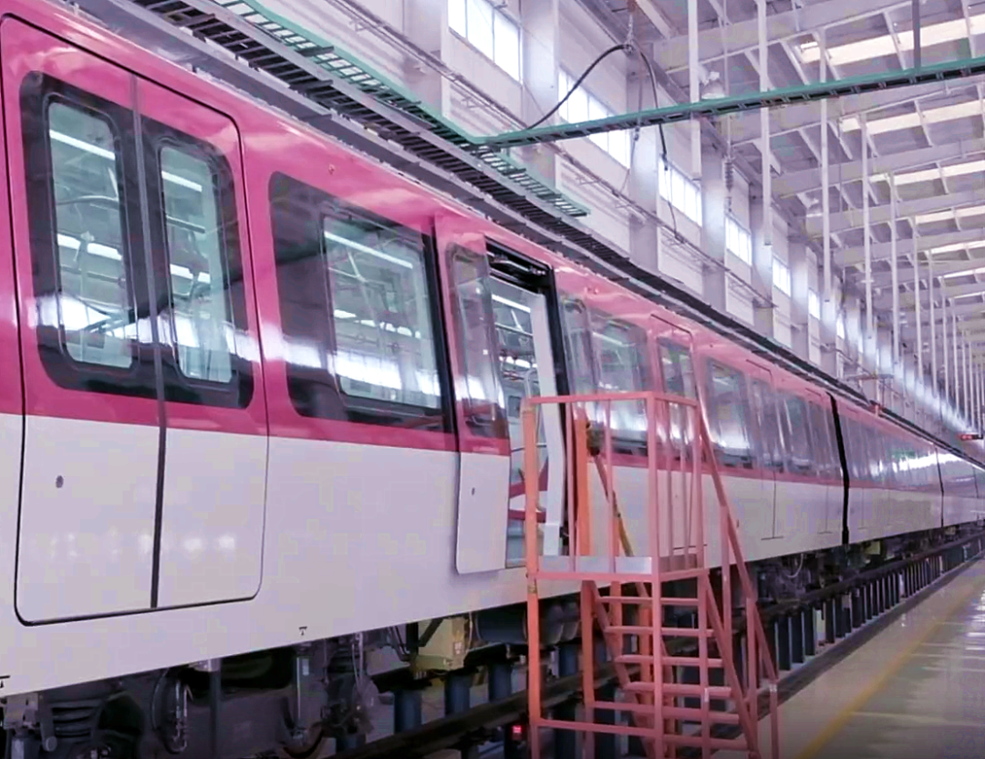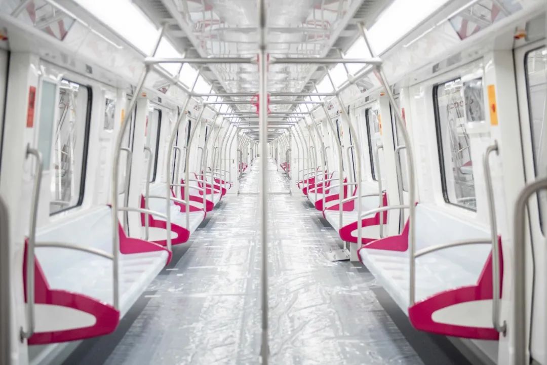 地铁8号线电客车采用绛红色,颜色充满活力和动感,车型为A型鼓型车,时速达到100公里。