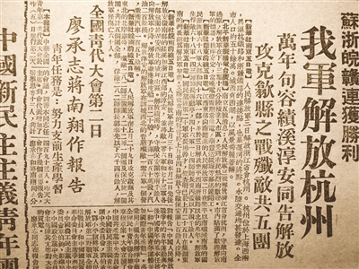 1949年5月6日,《人民日报》刊登的解放军解放杭州的报道
