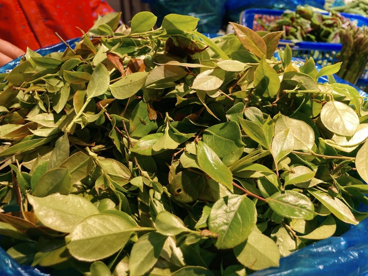 天气暖了,菜场的菜也是日日新。今天去凤起路菜场,发现一家菜摊上摆了一大袋树叶一样的东西。按照我的经验,这但凡能放在菜摊上买的,必然是能吃的东西,赶紧向老板娘请教!老板娘微微一笑,很是耐心解释道:“这就是用来煮乌米饭的乌饭叶!”