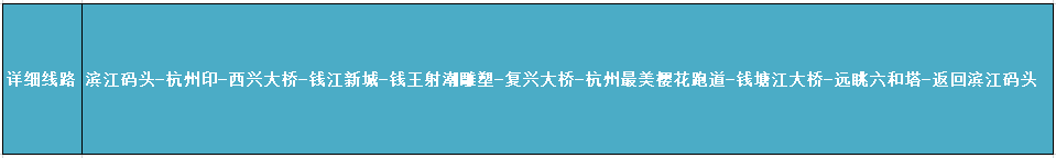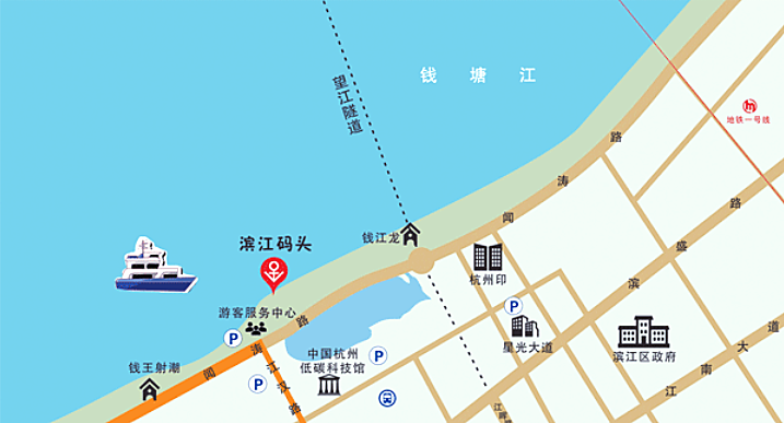 地址:登船地点位于钱江龙雕塑旁的滨江码头(滨江区闻涛路与江汉路交界)