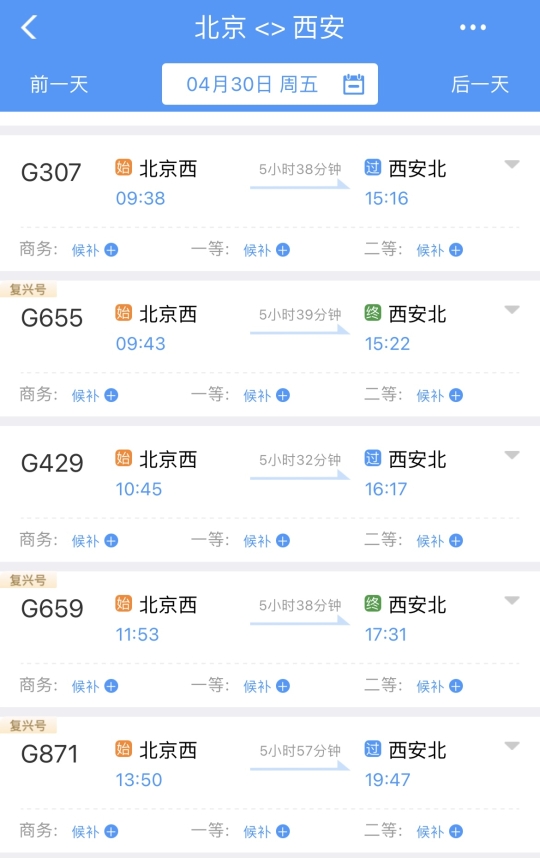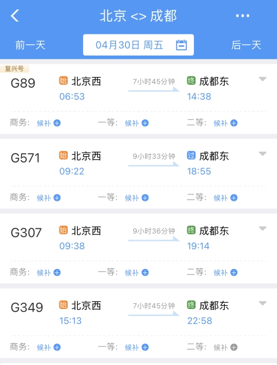 App虽已恢复,但4月30日当天的一些热门线路的车票已经售罄。